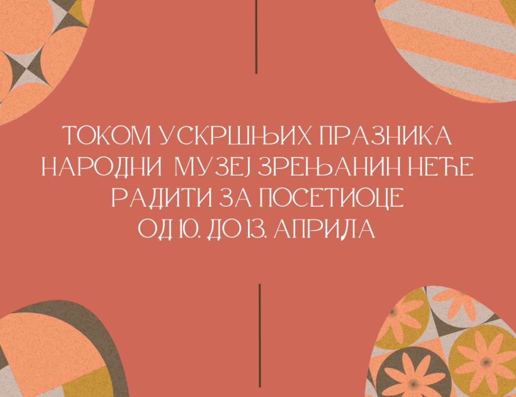 Поштовани посетиоци, Обавештавамо вас да Народни музеј Зрењанин током предстојећих празника неће бити отворен за публику у периоду од 10. до 13. априла. Након празничне паузе, са задовољством вас позивамо да нас посетите и уживате у нашим актуелним поставкама: • Салон музеја: Изложба „У ципелама Уроша Предића – Дневник из Италије“• Мали салон: Поставка „Икона […]