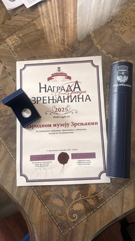 Народни музеј Зрењанин добитник је Награде града Зрењанина за 2025. годину поводом добијања највишег признања из области музејске делатности.